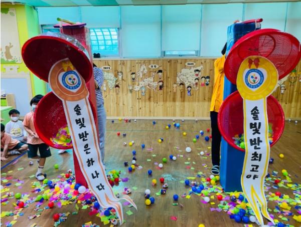 '5 happy day 축제'에서 유아들이 행복한 어린이날 주간을 보낼 수 있도록 미니올림픽, 에어바운스, 블랙라이트 놀이, 타르트 만들기, 조리기구 만들기 등 다양한 놀이와 체험활동을 준비했다.