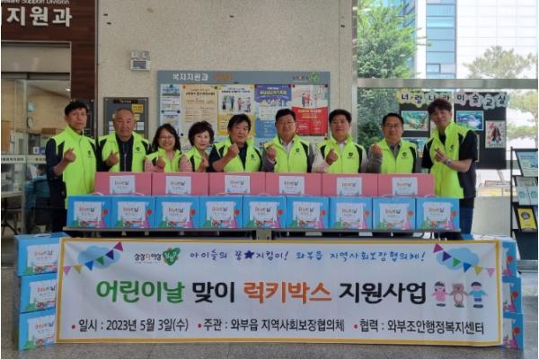 [한국뉴스타임=편집국] 남양주시 와부조안행정복지센터는 어린이날을 맞이해 지난 3일 와부읍 지역사회보장협의체와 아이들이 바르고 씩씩하게 자라길 바라는 마음으로 300만 원 상당의 럭키박스 60개를 지역 내 저소득 아동에게 전달했다.