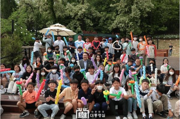 축사를 마친 대통령 부부는 어린이들에게 풍선을 선물하고 함께 기념 촬영하며 즐거운 추억을 선사했다. 또 참가자들과 함께 정원을 산책하고 페이스 페인팅, 마술쇼 등 준비된 공연을 관람 했다.
