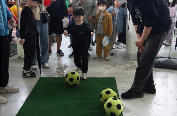 이날 행사에 참여한 30여 개의 부스들 중 김천상무 체험 부스는 가장 인기가 높았다. 어린이들이 직접 공놀이에 참여할 수 있는 ‘풋 퍼팅’ 때문이었다. 10시 부스 오픈 전부터 어린이들의 줄이 늘어섰고 풋 퍼팅 조기 마감까지 계속해서 대기 인원들로 붐볐다. 기존에 준비했던 마스코트 슈웅 인형, 가방걸이 인형 등 상품은 일찌감치 동이 났고 어린이들의 성원에 힘입어 상품을 추가해 진행했다.