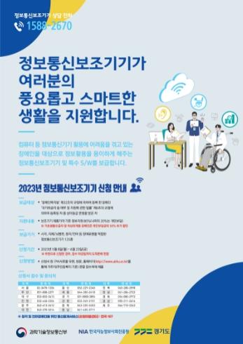 신청 대상은 경기도에 주민등록을 두고 있는 ‘장애인복지법’에 의해 등록한 장애인 및 ‘국가유공자 등 예우 및 지원에 관한 법률’에 의해 상이등급 판정을 받은 국가유공자다. 최종 선정되면 정보통신보조기기 제품가격의 80%를 지원받을 수 있으며, 기초생활수급자와 차상위계층 장애인은 90%를 지원받을 수 있다.