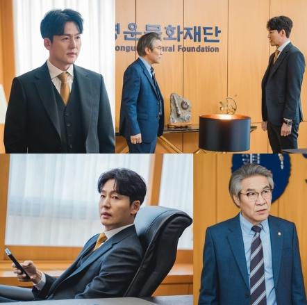 오늘(8일) 공개된 스틸에는 재단 이사장이 된 송제혁과 그를 찾아온 뒷배 기윤철(권태원 분)의원이 서로를 날 선 눈빛으로 바라보는 모습이 담겨 있다.