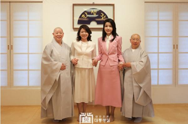 김 여사는 기시다 여사를 서울 진관사로 초청해 차를 대접하고 한국의 전통과 문화·예술을 소개했다. 김 여사는 “여사님께서 20년 이상 다도(茶道)를 익힌 만큼, 첫 한국 방문에서 보다 편안함을 느낄 수 있도록 다도의 자리를 마련했다”고 했으며, 함께 차를 마시며 양국의 다도 문화, 상생과 교류 확대 등에 대해 이야기를 나눴다.