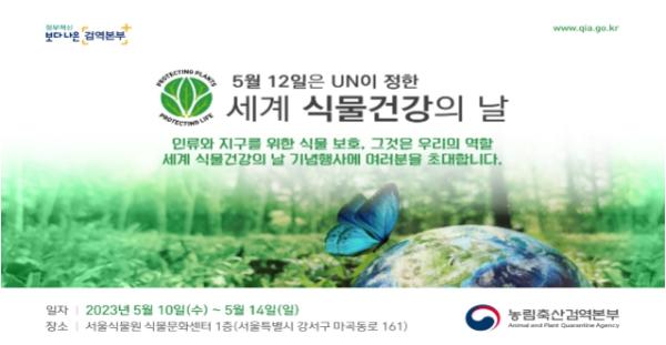 ‘세계 식물건강의 날’은 유엔(UN)이 2022년 제76차 총회에서 식물 건강에 대한 각국의 관심과 협력을 촉구하기 위해 매년 5월 12일을 지정하여 선포했으며, 우리나라도 국제사회의 노력에 동참하고자 검역본부 주도로 매년 기념행사를 다양하게 추진해오고 있다.