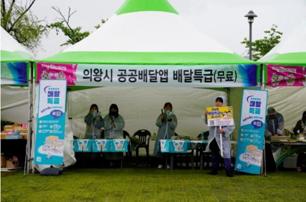 배달특급은 비바람이 몰아치는 궂은 날씨 속에서도 의왕철도축제현장을 찾은 시민과 호흡하며 할인쿠폰과 기념 물품을 통해 배달특급을 홍보했다.