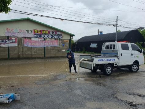 특히, 진접읍 내곡리의 침수된 도로에서 배수 작업을 실시했으며, 수동면 내방리의 전도된 수목이 전선에 걸쳐 있는 위험한 상황 속 긴급히 장비를 투입하고 전도된 수목을 제거해 2차 피해를 예방했다.