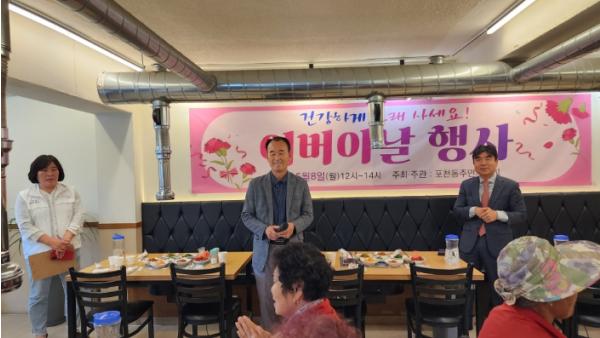 [한국뉴스타임=편집국] 포천동 주민자치회는 지난 8일 포천동에 거주하는 홀몸어르신 30명을 초청해 점심을 대접하고 어버이날 감사 행사를 개최했다.