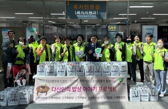 이번 ‘정성밥상’은 다산행정복지센터와 다산1동 협의체에서 저소득 취약계층을 위해 준비한 '다산인의 7가지 밥상 이야기 프로젝트' 중 첫 번째로 진행됐으며, 사회복지공동모금회를 통해 다산1동 협의체에 지정 기탁된 후원금으로 마련됐다.