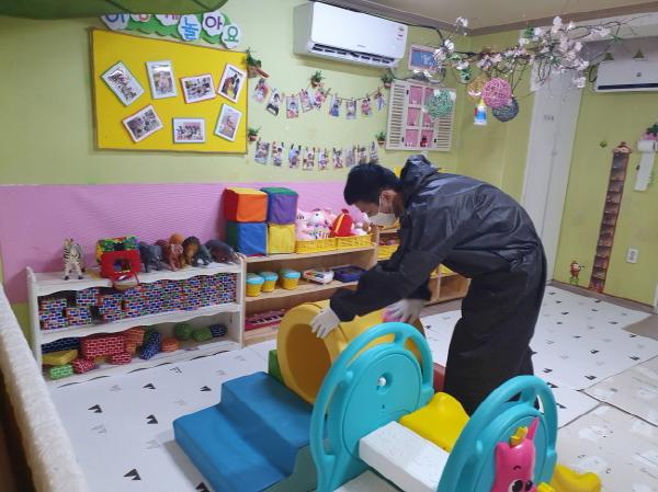 1일 시에 따르면 코로나19 장기화로 어린이집 휴원 기간이 길어지면서 보호자의 돌봄 부담이 커지고 긴급보육 이용률이 높아짐에 따라 66명의 방역인력을 동원해 관내 유치원 87개소와 어린이집 468개소 전체 시설의 내·외부 방역 및 소독을 진행했다.