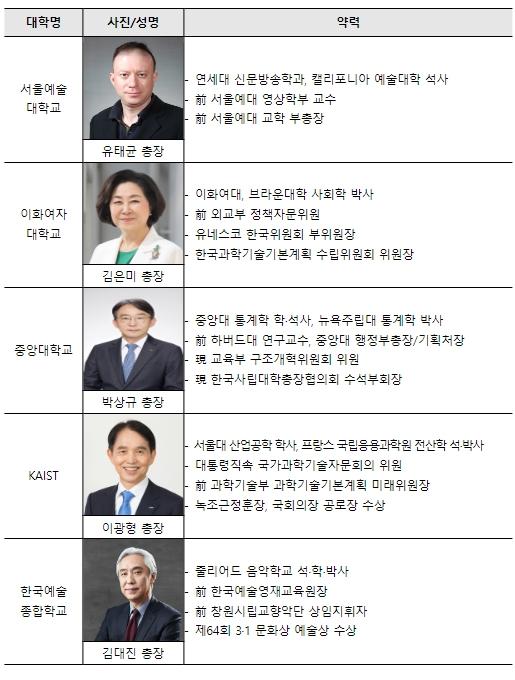 [한국뉴스타임=편집국] 문화체육관광부는 K-컬처에 활력을 더하기 위해 서울예술대학교(총장 유태균)와 이화여자대학교(총장 김은미), 중앙대학교(총장 박상규), KAIST(총장 이광형), 한국예술종합학교(총장 김대진) 5개 대학이 5월 10일(수), ‘예술 및 문화콘텐츠 산업 인재 육성을 위한 업무협약’을 체결한다고 밝혔다.