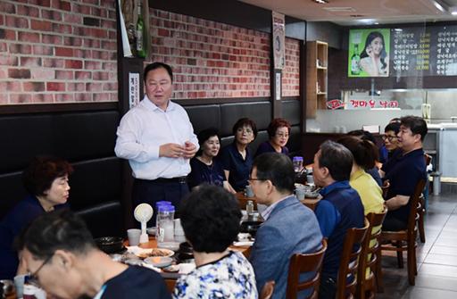 이날 조찬에는 시설청소원 15명과 김인호 의장, 비서실장, 의정담당관 등을 포함해 20여명이 참석했다.