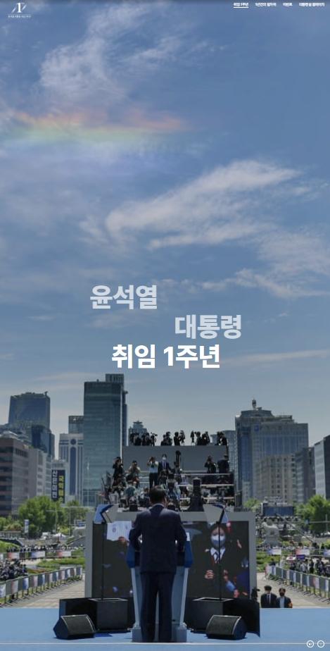 대통령실 공식 웹사이트에 개설된 취임 1주년 홈페이지에서는 윤 대통령의 취임 후 1년간 달라진 대한민국의 모습이 소개됐다. 앞서 ‘윤석열TV’ 유튜브 채널을 통해 공개된 ‘바로 서는 대한민국’(30초) 영상이 전면에 배치됐고, 세부적으로는 외교·경제·과학기술 분야별 변화가 특별 홈페이지에 담겼다. 특히 외교 분야에서는 ‘행동하는 한미동맹 구현’, ‘미래지향적 한일관계’, ‘정상 세일즈 외교로 우리 기업 총력 지원’ 등이 주요 어젠다로 꼽혔다.