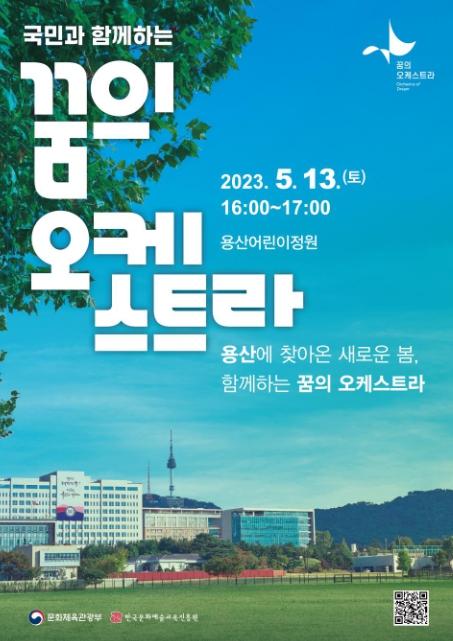[한국뉴스타임=편집국] 문화체육관광부는 한국문화예술교육진흥원과 함께 새롭게 개방된 용산어린이정원에서 5월 13일, ‘꿈의 오케스트라’ 공연을 개최한다.