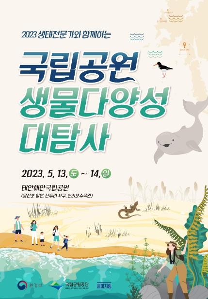 [한국뉴스타임=편집국] 환경부 산하 국립공원공단(이사장 송형근)은 5월 13일부터 이틀간 ‘제1회 국립공원 생물다양성 대탐사’를 태안해안국립공원에서 개최한다. 이번 행사는 국립공원 사회관계망서비스(블로그 등)를 통해 약 80명(20팀)을 공개 모집하여 분야별 생태계 전문가와 함께 몽산포 갯벌, 신두리사구, 신진도, 마도 등 태안해안국립공원 일대의 생물종을 전문가와 함께 살펴본다.