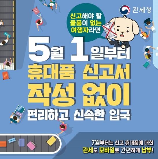 [한국뉴스타임=편집국] 5월 1일부터?신고해야 할 물품이 없는 여행자는?‘휴대품 신고서’ 작성 없이?편리하고 신속한 입국이 가능해졌습니다.?7월부터는 신고 휴대품에 대한 관세도 모바일로 간편하게 납부할 수 있게 됩니다.