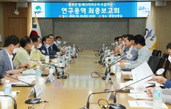 평택시(시장 정장선)는 지난 6월 30일 시청 종합상황실에서 시장, 부시장, 이병배 평택시의회 부의장 등 통복천 특위 시의원, 전문가, 한국농어촌공사 안성지사, T/F부서장 및 환경단체 관계자 등이 참석한 가운데 ‘통복천 및 배다리저수지 수질개선 연구용역 최종보고회’를 개최했다.