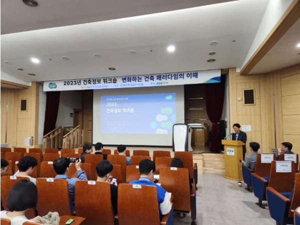 국가건축정책위원회 안용한 위원의 ‘메가트랜드와 국가 건축정책 방향’에 대한 강의를 시작으로 국토교통부 조익희 사무관의 ‘건축정책, 건축법 개요 및 개정현황’에 대한 강의가 이어졌다. 국가 건축정책의 기본방향인 지역 건축안전에 대한 강의도 진행됐는데 한국건설안전협회 최용화 원장이 ‘건설현장 안전관리 추락재해예방’을 안내했다. 공공기관 RE100 달성을 위한 지원책의 일환으로, 한국에너지공단 서윤규 박사를 초청해 ‘제로에너지건축 정책 동향 및 인증사례’를 설명했다.