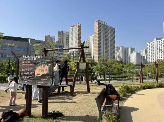 시는 구리갈매 공공주택지구내 갈매중앙공원 잔디광장 주변으로 대형목으로 자랄 수 있는 느티나무를 심고, 다양한 계절감을 느낄 수 있는 소규모 정원을 조성했다.