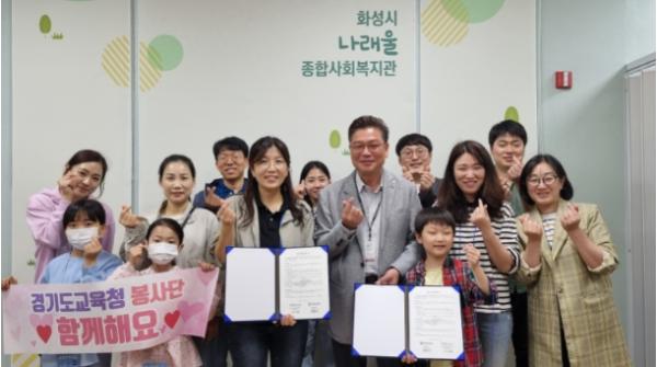 이번 봉사활동은 경기도교육청 봉사단과 화성시 나래울복지관이 ▲인적?물적 지원교류 및 상호협력, ▲장애인 취미?여가 프로그램 봉사활동 정기 참여, ▲지역의 나눔 문화 참여 및 확산을 위한 업무협약을 맺고 매월 정기적으로 진행하는 봉사프로그램 중 첫 활동이다.