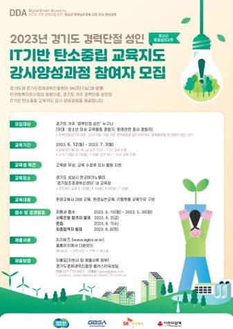 [한국뉴스타임=편집국] 경기도와 경기도경제과학진흥원은 ‘정보기술(IT)기반 탄소중립 교육강사 양성과정’에 참가할 교육생을 오는 30일까지 모집한다.