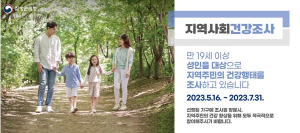 [한국뉴스타임=편집국] 질병관리청은 17개 광역자치단체와 함께 5월 16일부터 7월 31일까지 전국 만 19세 이상 성인 약 23만 명을 대상으로 '2023년 지역사회건강조사'를 실시한다.