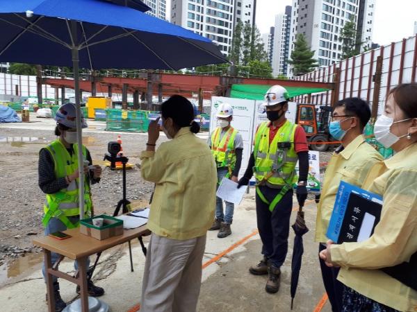 시는 ‘힐스테이트 과천 중앙’ 오피스텔 신축공사 현장(중앙동 38번지)과 ‘e편한세상 시티 과천’ 오피스텔 신축공사 현장(별양동 1-22번지) 등 대형공사 현장 두 곳을 방문해, 코로나19 확산 예방을 위한 현장 방역관리자 지정 여부, 방역지침 수립 여부 등과 종사자의 체온 검사 이행 여부 등을 집중 점검했다.