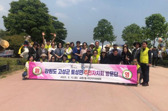 구리시 교문2동 주민자치위원회는 고성군 토성면 주민자치회와 지난 2007년 4월 13일 처음 자매결연을 맺은 후 상호교류해왔다. 코로나19 이후 중단됐던 교류를 이번 구리시의 대표축제인 ‘유채꽃 한강예술제’를 통해 재개했으며, 자매결연 도시로서 문화교류를 더욱 공고히 이어 나가고자 한다.