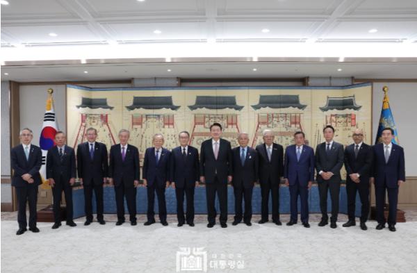 [한국뉴스타임=편집국] 윤석열 대통령은 5. 15일 오후, 한일 경제인회의 참석차 한국을 방문한 일본 대표단을 접견했다.