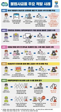 특히 미성년자(고3)가 온라인을 통해 37명을 상대로 불법 대출을 해주고 수고비, 지각비 등의 명목으로 고금리를 수취한 사례도 있었다.
