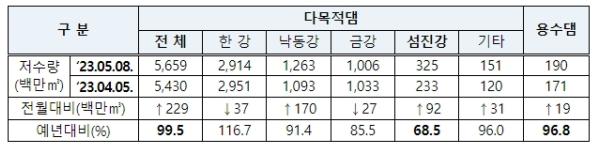 이들 댐에 대해서는 엄격한 용수공급 관리와 가뭄대책을 지속 추진하여 용수공급에 지장이 없도록 할 것이다.