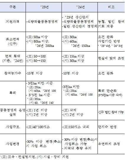 농식품부는 지난 4~5월 지자체 담당자와 농업인 등을 대상으로 설명회 등을 실시했으며, 지자체·농협 등 현장 의견 등을 고려하여, “2024년도 가루쌀 생산단지 육성지원사업”에 기존 식량작물공동경영체가 아닌 신규 조성하는 생산단지도 사업을 신청할 수 있도록 하는 한편, 가루쌀 재배 최소면적도 50ha 이상에서 30ha 이상으로 줄이는 등 많은 농업인이 참여할 수 있도록 기준을 완화했다.