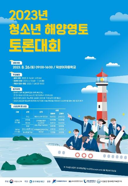 [한국뉴스타임=편집국] 해양수산부는 ‘2023년 청소년 해양영토 토론대회 및 국제해양법 모의재판대회’의 참가신청을 5월 16일과 18일부터 각각 받는다.