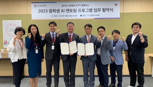 [한국뉴스타임=편집국] 경기도교육청과 KT(대표이사 구현모)가 16일 ‘중학생 인공지능(AI) 코딩 프로그램’ 운영을 위한 업무협약을 맺고 학생에게 쉽고 재미있는 AI 코딩 경험 제공을 위해 힘을 모은다.