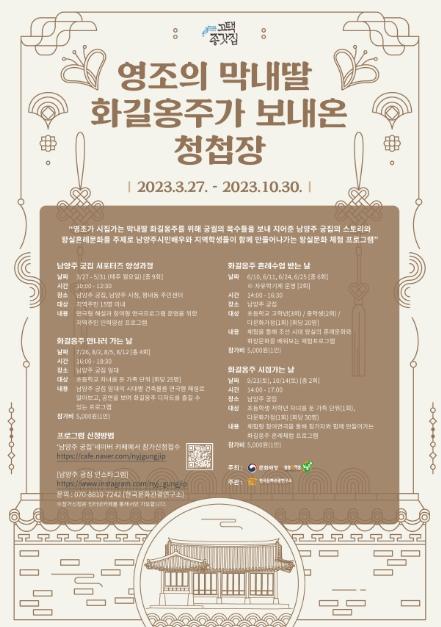 [한국뉴스타임=편집국] 남양주시는 문화재청에서 실시하는 '2023년 고택·종갓집 활용사업'으로 선정된 ‘영조의 막내딸 화길옹주가 보낸 청첩장’의 일환으로, ‘남양주 궁집 서포터즈 양성 과정’을 성공적으로 마쳤다고 17일 밝혔다.