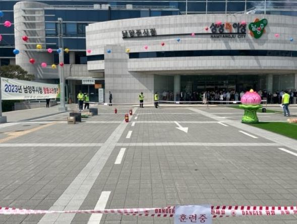 [한국뉴스타임=편집국] 남양주시는 지난 16일 시청 광장에서 남양주시 자율방재단, 남양주소방서와 합동으로 소방 훈련을 실시했다고 17일 밝혔다.