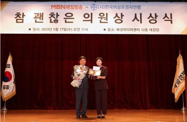 [한국뉴스타임=편집국] 더불어민주당 홍기원 국회의원(국토교통위원회, 평택갑)이 17일 MBN과 사단법인 한국여성유권자연맹이 선정한 2022년도 하반기‘참 괜찮은 의원상’을 수상했다.