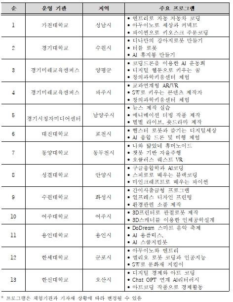 도교육청은 참여 대학과 전문기관의 첨단시설과 기자재, 프로그램, 인력을 공유해 ▲코딩 ▲드론 ▲챗봇·로봇 ▲디지털 웹툰 ▲AR·VR ▲3D 프린팅 ▲AI 리터러시 등 디지털 창의융합체험을 활성화한다.