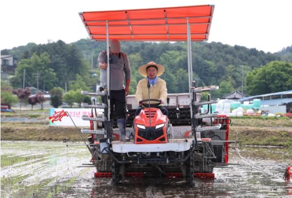 서태원 군수는 지난 15일 상면 연하리 드문모 심기 현장을 찾아 직접 이앙기를 운전하며 풍작을 기원하고 농업인들을 격려하는 자리에서 “우리 지역은 농업 비중이 큰데도 고령화 등으로 농촌인력이 부족하다”며 “노동력과 농자재 투입을 줄일 수 있는 드문모 모내기 확대 보급 등 농업발전과 농촌사랑을 위해 할 수 있는 사업추진에 최선을 다하겠다”고 말했다.