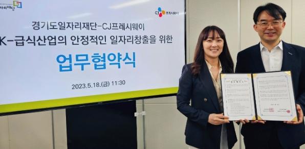 [한국뉴스타임=편집국] 경기도일자리재단이 식자재유통과 단체급식 전문 업체인 CJ프레시웨이(대표자 정성필)와 ‘K-급식산업의 안정적인 일자리 창출을 위한 업무협약’을 체결했다고 19일 밝혔다.