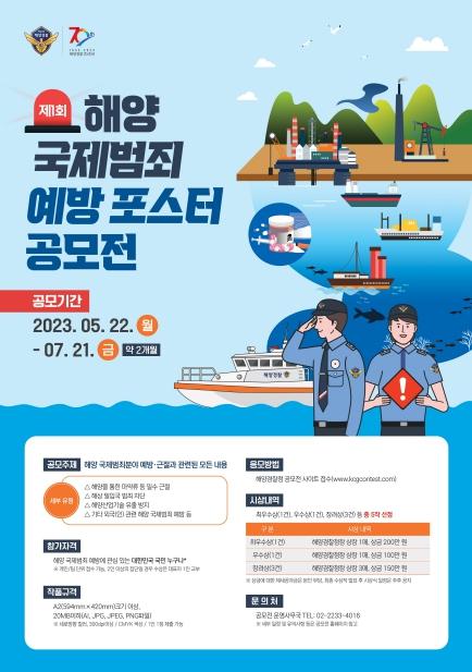 [한국뉴스타임=편집국] 해양경찰청은 5월 22일부터 7월 21일까지 ?제1회 해양 국제범죄 예방 포스터 공모전?을 개최한다고 19일 밝혔다.