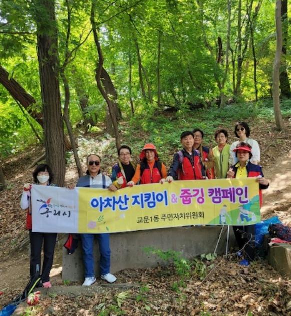 이날 활동은 올해 두 번째로 진행된 주민자치 특화사업이며, 교문1동 주민자치위원 및 기간단체 회원 10여 명이 아차산 엄마약수터와 정각사 등산로에 버려진 쓰레기를 치우는 등 환경정화 활동을 펼쳤다.