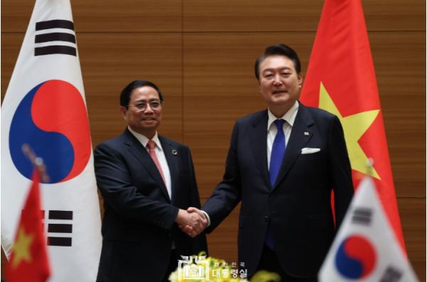 [한국뉴스타임=편집국] 윤석열 대통령은 G7 정상회의 참석차 일본 히로시마를 방문한 계기에 5. 19일 오후 6시 팜 밍 찡(Pham Minh Chinh) 베트남 총리와 정상회담을 갖고, 한-베트남 관계와 한-아세안 협력 증진 방안에 대해 논의했다.