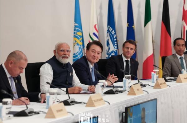[한국뉴스타임=편집국] 윤석열 대통령은? 20일 일본 히로시마에서 열린 주요7개국(G7) 정상회의 확대세션에 연이어 참석해 국제사회를 위한 우리 정부의 기여를 약속했다.