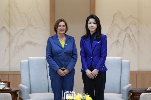 [한국뉴스타임=편집국] 김건희 여사는 5. 21일 저녁 올라프 숄츠 독일 총리와 함께 한국을 공식 방문한 브리타 에른스트 여사와 용산 대통령실에서 만나 환담을 나눴다.