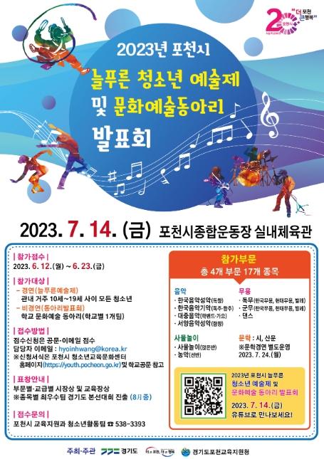 [한국뉴스타임=편집국] 포천시는 오는 7월 14일 포천시종합운동장 실내체육관에서 ‘제25회 포천시 늘푸른청소년예술제 및 문화예술 동아리 발표회’를 개최한다고 밝혔다.