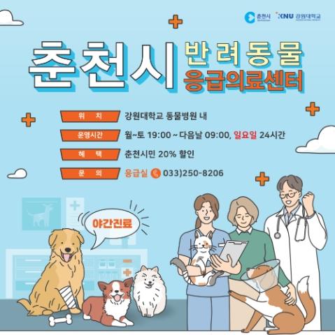 시 관계자는 “반려동물 응급의료센터 개원 이후, 늦은 시간에도 반려동물 진료를 할 수 있어, 강원지역 시군과 인근 경기지역 반려인들에게 큰 호응을 얻고 있다”라며 “앞으로도 시는 사람과 동물이 함께 행복한 도시 춘천 구현을 위해 최선을 다하겠다”라고 말했다.
