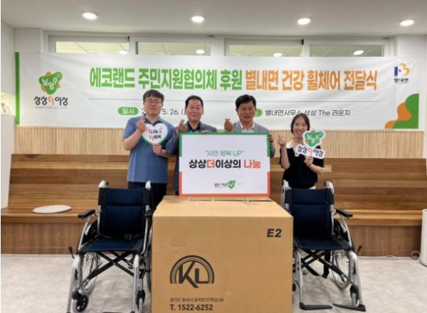 [한국뉴스타임=편집국] 남양주시 별내면(면장 김현태)은 26일 에코-랜드 주민지원협의체 위원회(위원장 이영근)에서 ‘휠체어 무료 대여 사업’을 지원하기 위해 휠체어 5대를 후원했다고 밝혔다.