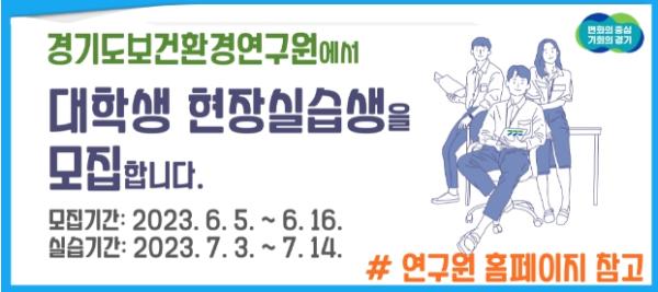 [한국뉴스타임=편집국] 경기도보건환경연구원이 6월 5일부터 16일까지 하계 현장실습에 참여할 대학생을 모집한다.