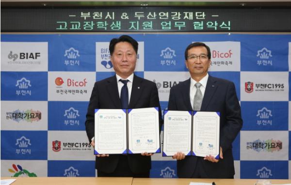 [KNT한국뉴스타임] 부천시는 두산연강재단과 함께 6월 30일부터 7월 1일까지 이틀간 지역 내 저소득가정 고교생 100명에게 1억 원의 장학금을 지급했다.