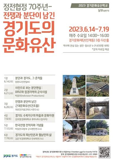 [한국뉴스타임=편집국] 경기문화재단 경기문화재연구원(원장 이지훈)은 정전협정 70주년을 맞이하여 '전쟁과 분단이 남긴 경기도의 문화유산'이라는 주제로 상반기 2023 경기문화유산학교를 진행한다.